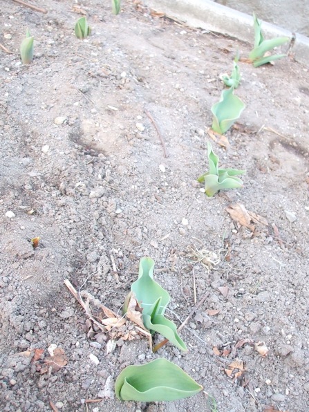 花壇のチューリップも、出てきました〜