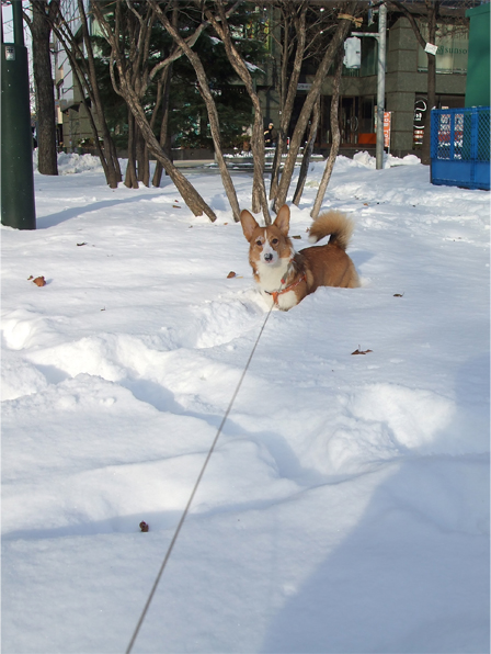 ワン達は、ズボズボ飛び跳ねながら雪道を進むものの