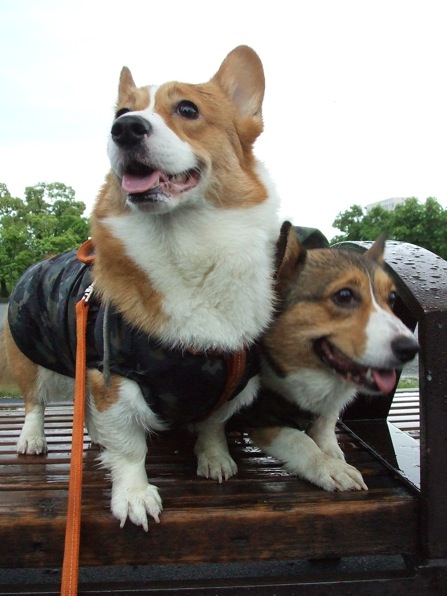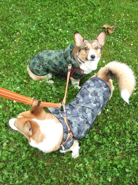 お手製のレインコート着てお散歩。