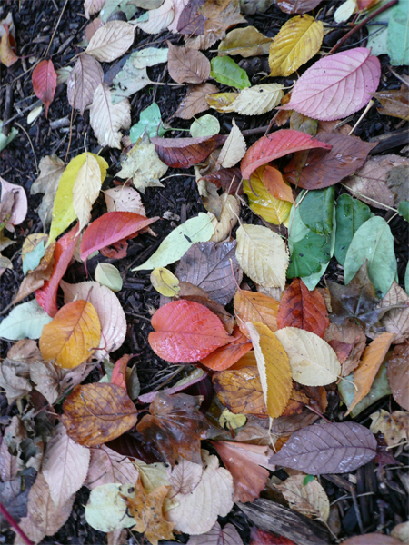 色とりどりの葉っぱ、赤、黄色、緑、茶色♪