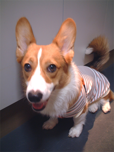 出かけ間際の、あの表情に比べニコニコご機嫌です。