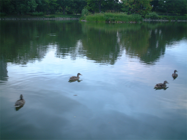 水辺に鴨さん泳いでいたよ。