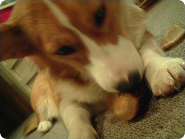 お気に入りのおもちゃ?のひとつ、牛のひづめ。