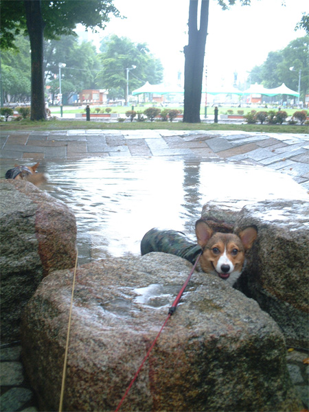今日もジャブジャブ水たまりに入ったよ。