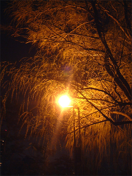 枝垂れ柳が風で揺れていたよ。