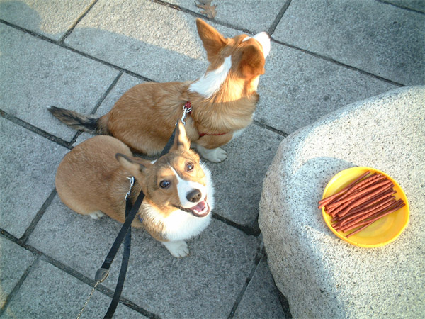 ふたりともイイコなので、ご褒美のジャーキーだよ♪