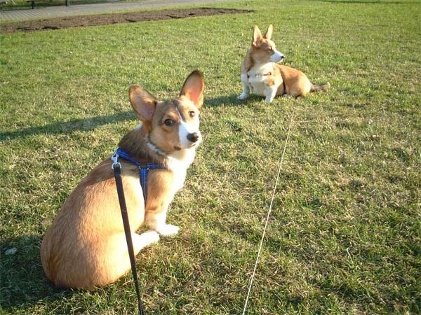 芝生の上を戯れながら走ったり。