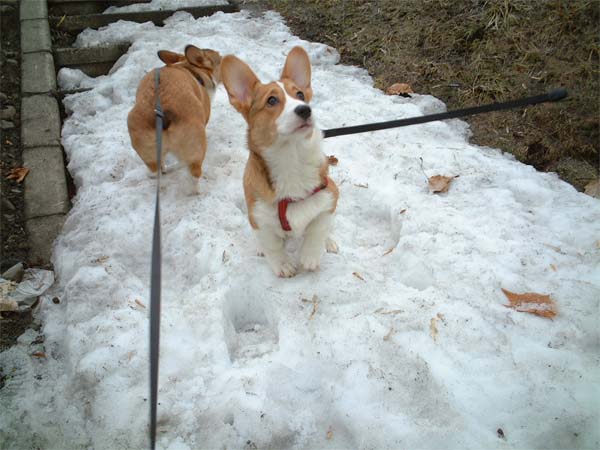 お散歩デビューが雪の上だったので