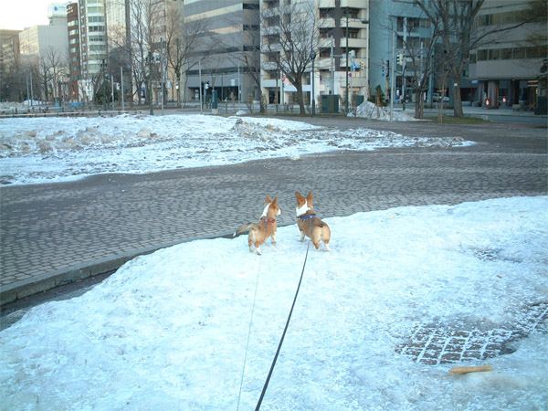 殆ど融けたけど、公園にはまだ少しの雪。