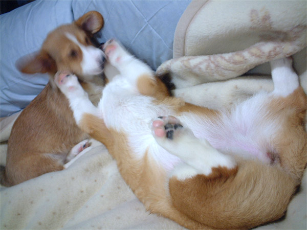 隣の枕の上にドーンと寝て、お尻はコッチ。