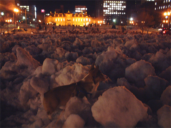 雪が少し融けてきて、昨日は少し暖かかったのだけど