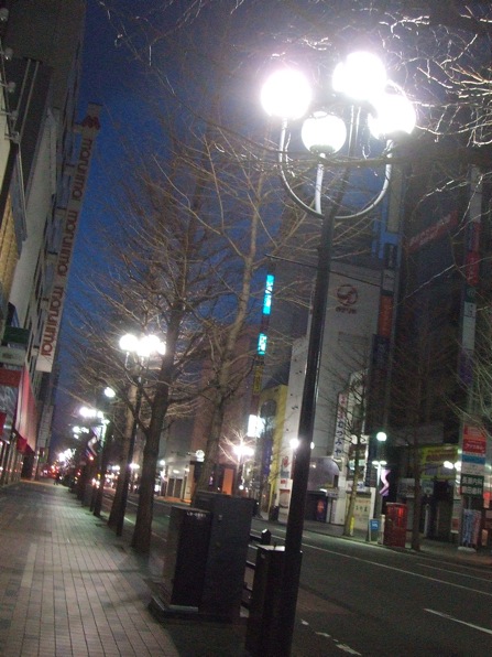 僅かな街頭が灯っているけれど、6丁目辺りは真っ暗です。