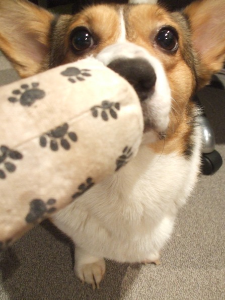 くわえて持ち去った後は、顎の下に敷いてジッとしてます。