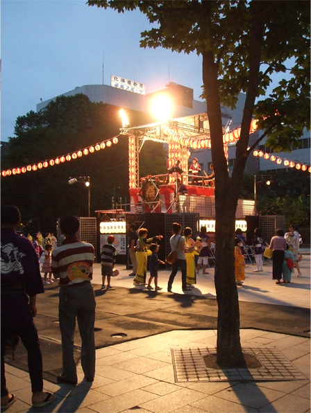 公園を歩いていると、盆踊りが始まりました。