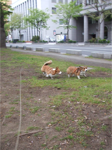 ちょうどいい棒を見つけたmoofが、clause誘って追いかけっこ。