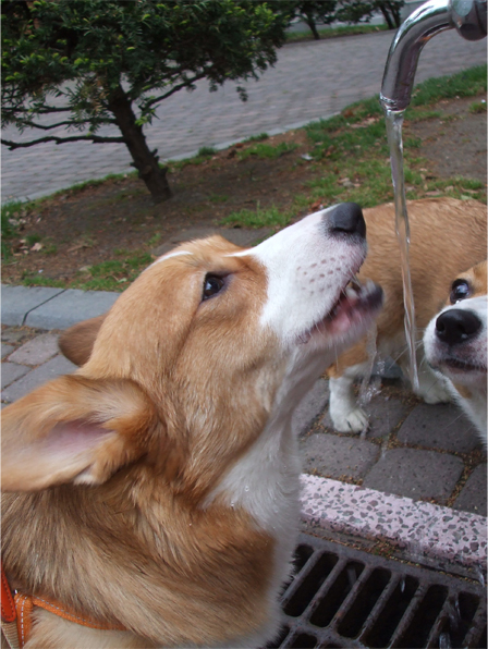 沢山走った後には、お水飲みタイム