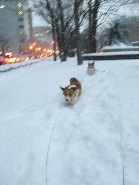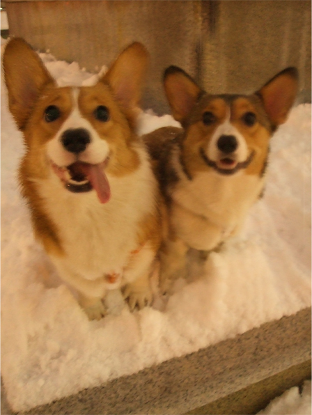 昨日は、大粒の雪が降ってきてワン達も、鼻先に雪を乗せながら