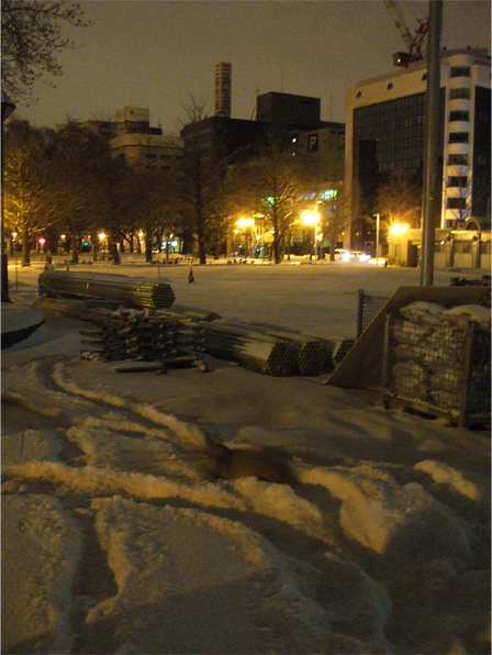 雪祭りの準備で、ドコも入れない状態。