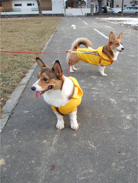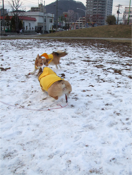 ふたり一緒に雪道を作りながら、走り回り。