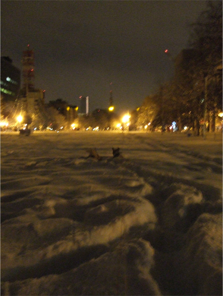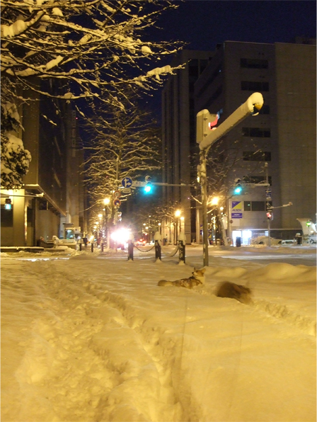 夜中に降ったのか、20cm〜30cm程降り積もった雪。
