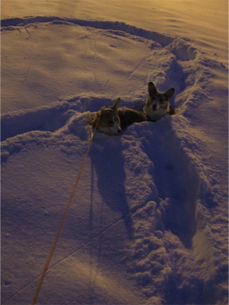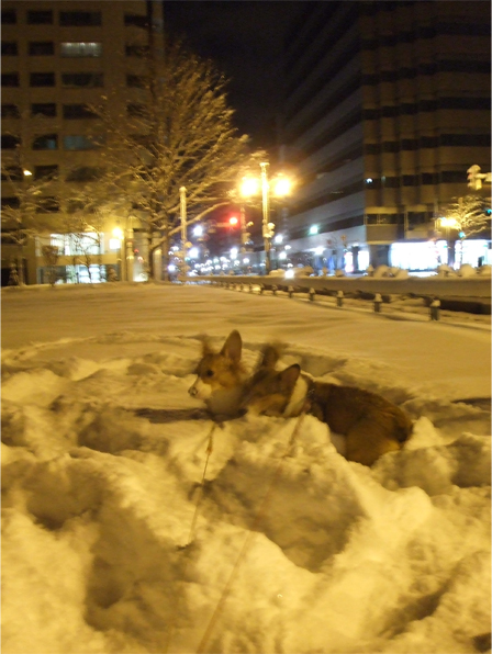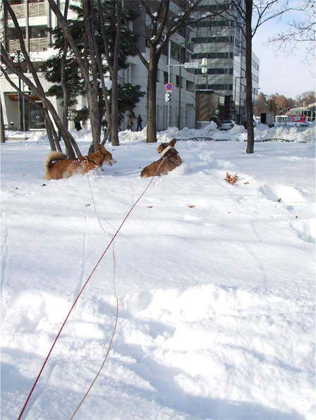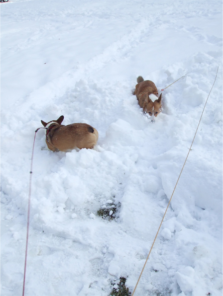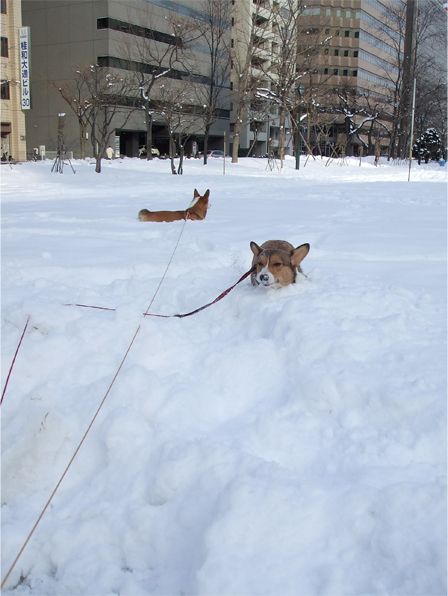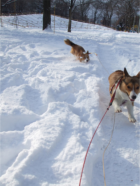 ワン達は、ズボズボ飛び跳ねながら雪道を進むものの
