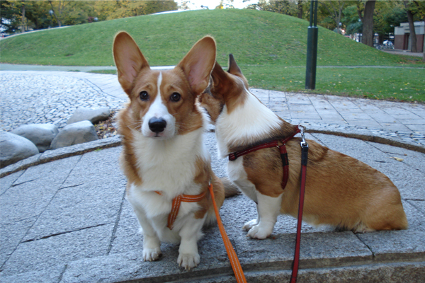 こんな風に、1本のリードに、2頭引きリードを付けるしかなく...