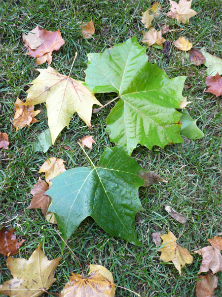 色とりどりの葉っぱ、赤、黄色、緑、茶色♪