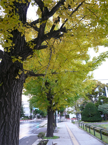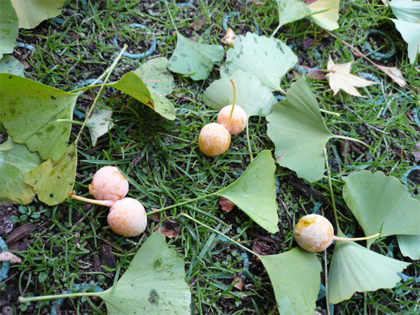 なにかな〜って覗いてみたら、おじさんが銀杏を拾っていました。