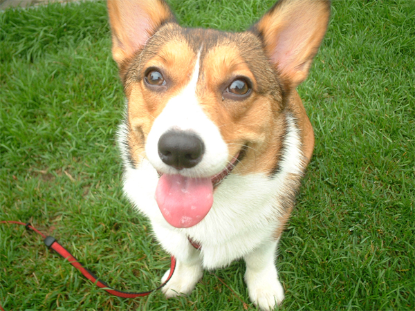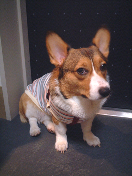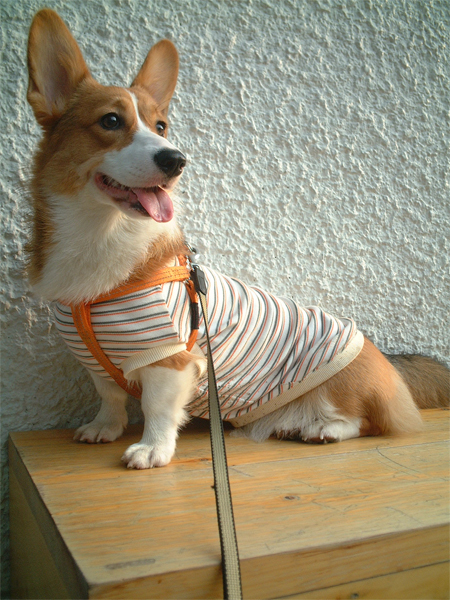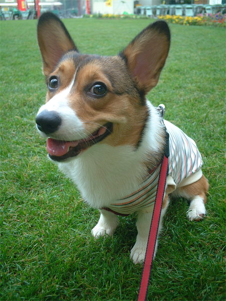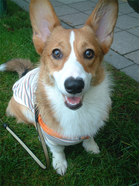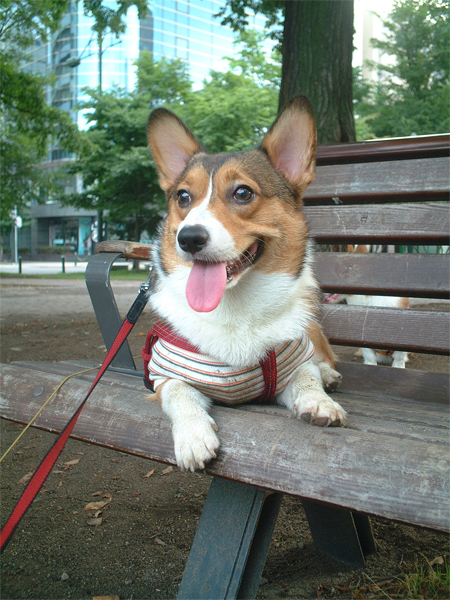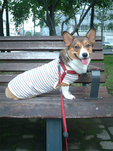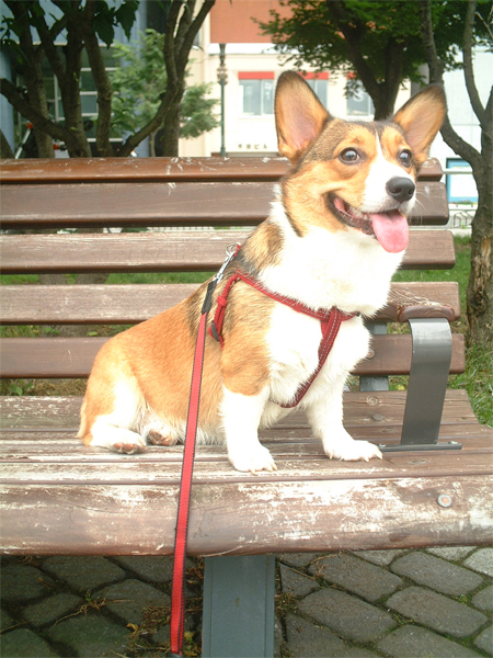 出かけ間際の、あの表情に比べニコニコご機嫌です。