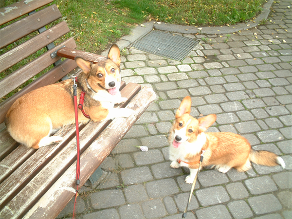 お散歩中も、電柱や木を挟んで、clauseとmoofが逆の方向へ行って