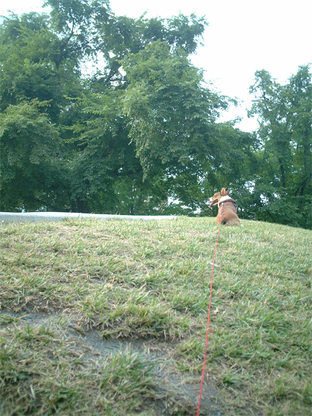 大きな広場で、お散歩中のワンちゃんに遭遇。