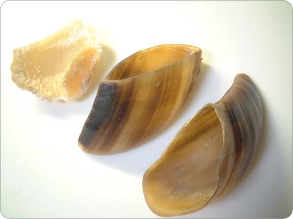 写真左のが、カジカジして形も変って小さくなったひづめです。