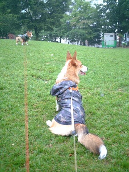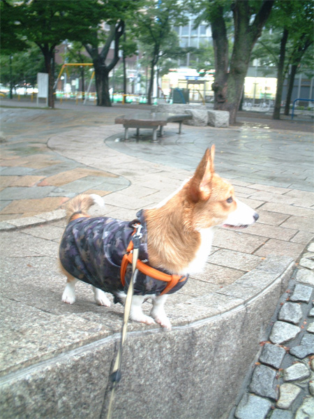 レインコート着用でお出かけです。