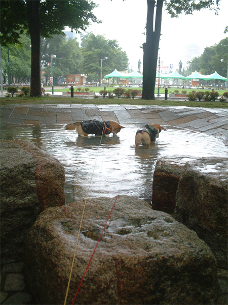 今日もジャブジャブ水たまりに入ったよ。