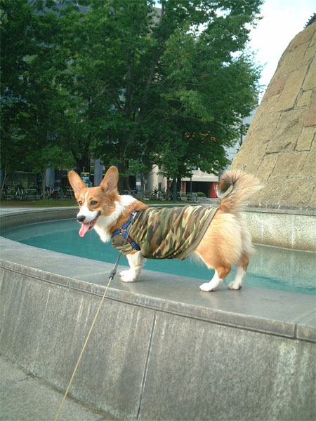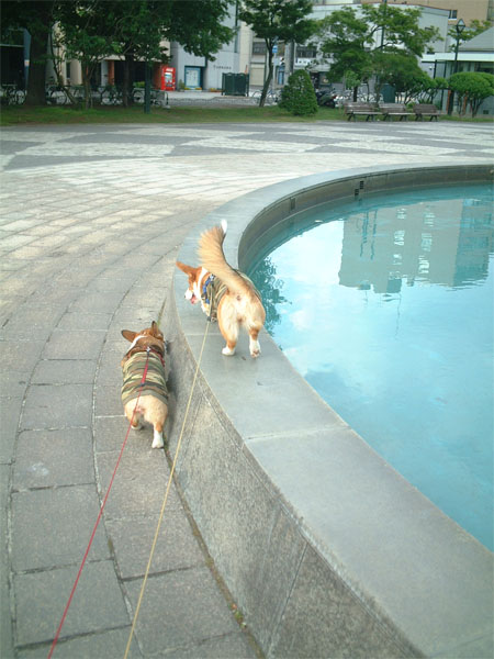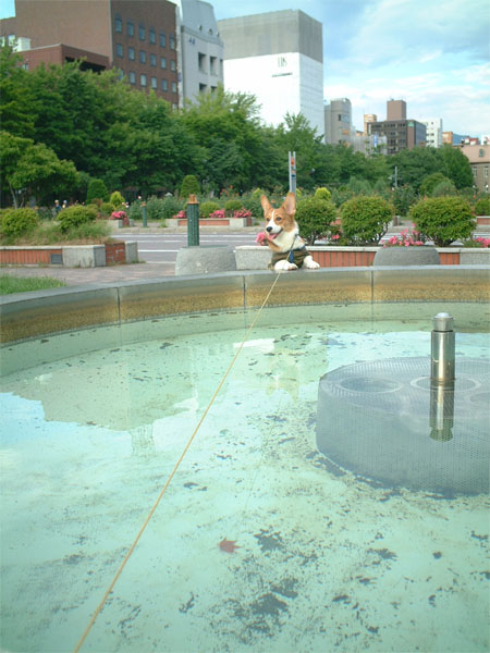 clauseはココもお気に入りで、グルグル噴水の縁を歩くのが楽しいようです。