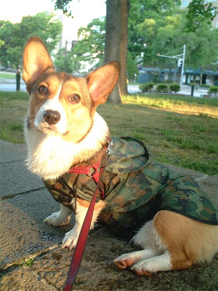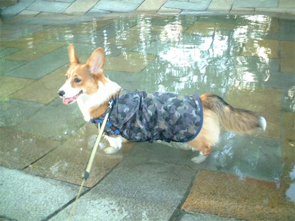 今日はレインコートを着てお散歩。