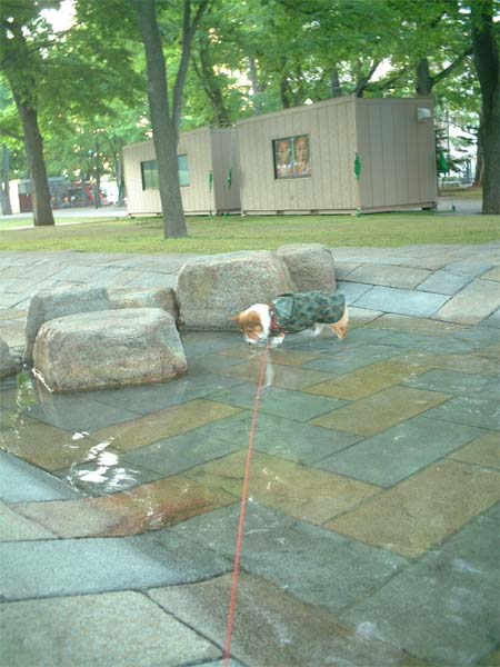 噴水前で、パパンに入っちゃダメと言われてそう↓