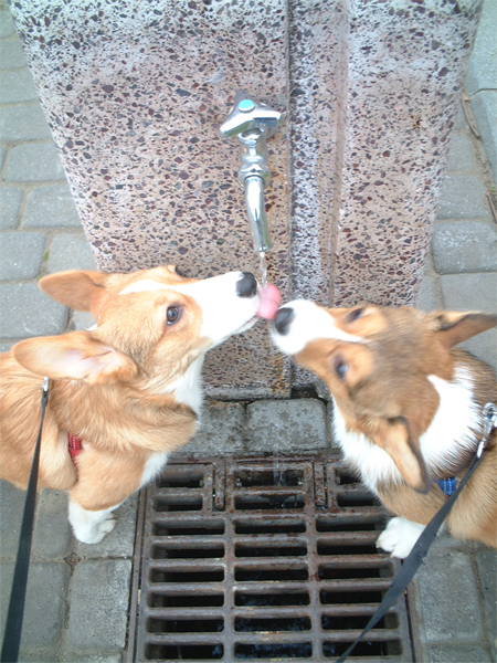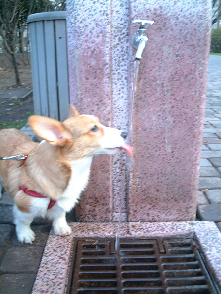 「お水飲む?」の一言で、水飲み場へ。