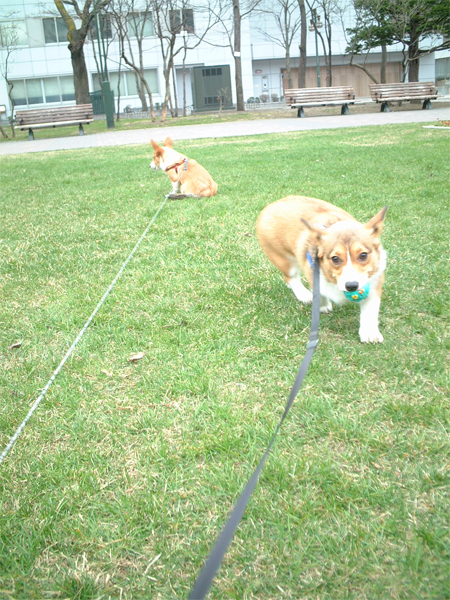 お外に慣れてきたようで、ボールを持ってくる事ができるようになりました。