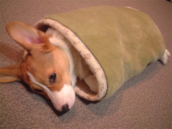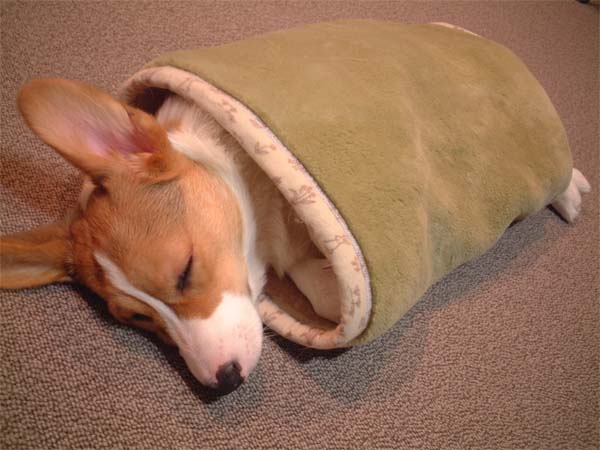 ハウスの中から自分で引っぱり出してきた毛布の上で