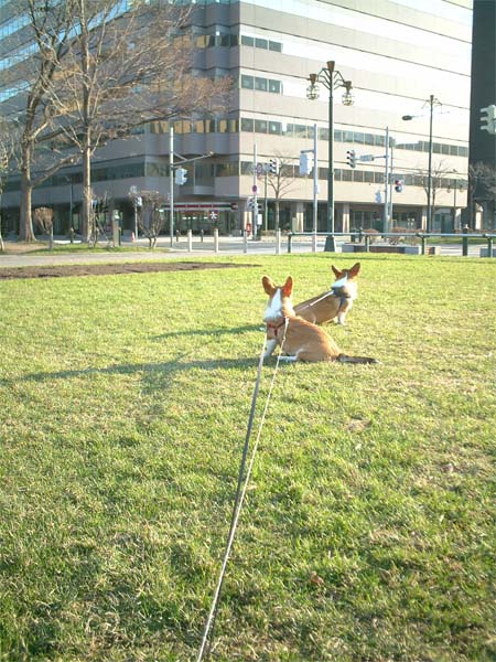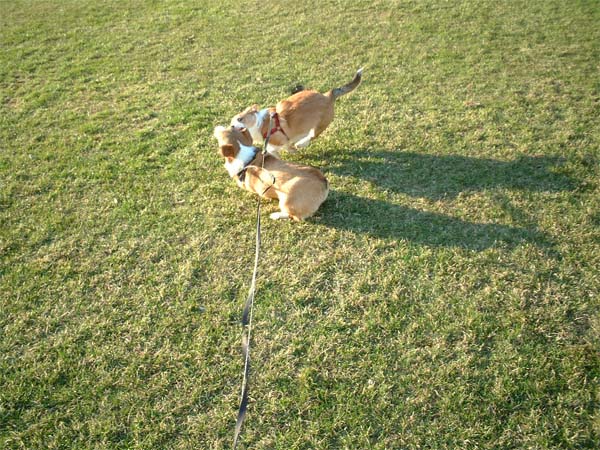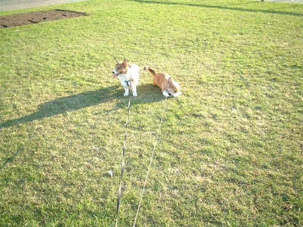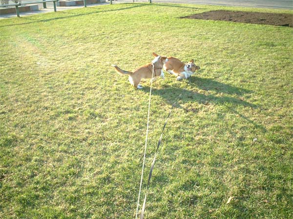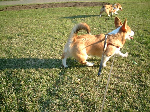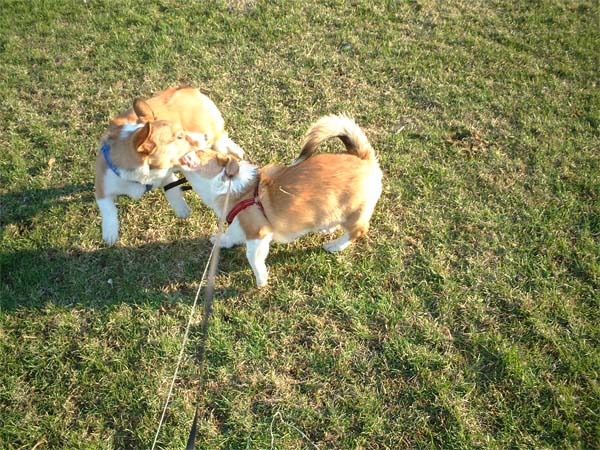 芝生の上を戯れながら走ったり。