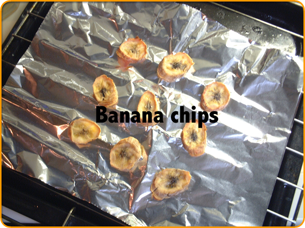 カリカリの焼きバナナチップス。
