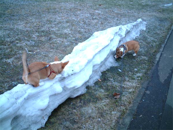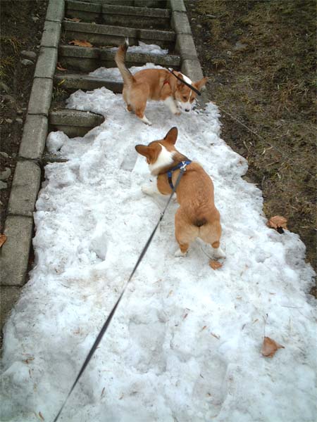 お散歩デビューが雪の上だったので