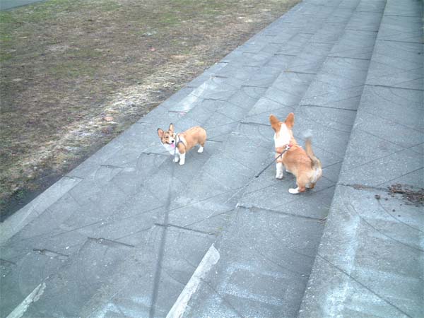 階段で追いかけっこ。