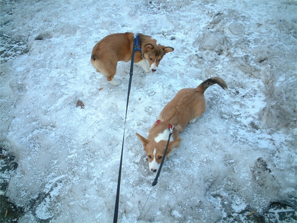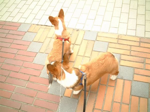 外へ出ると、ふたりとも嬉しそうに歩いて。