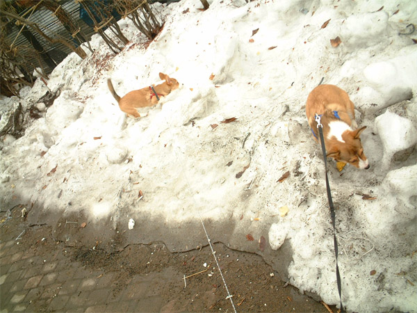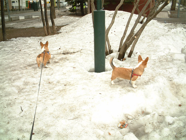 殆ど融けたけど、公園にはまだ少しの雪。