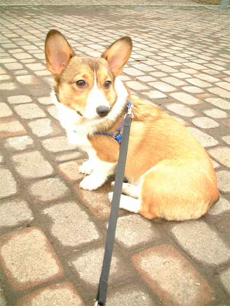 公園へ着いて、リードのボタンを解除し