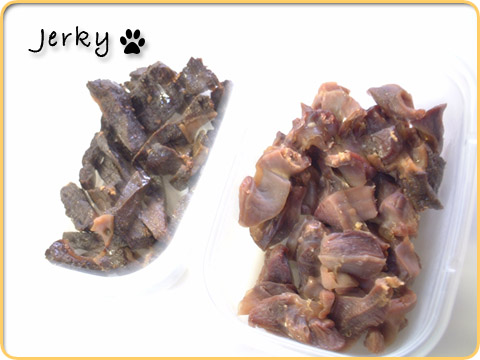 市販のジャーキーより、手作りのを喜んで食べてくれるので
