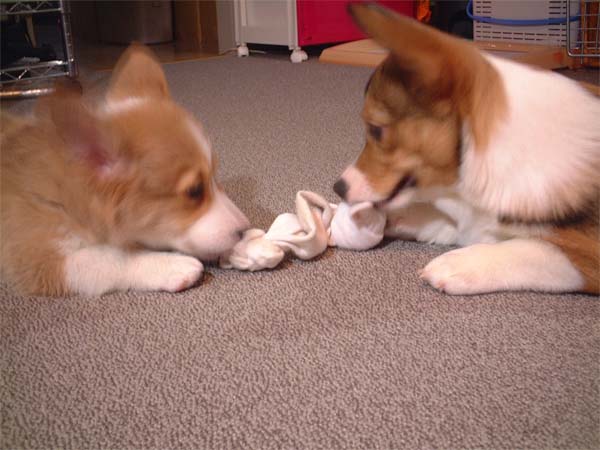 おもちゃは、気に入ったようで一緒にカミカミしながら引っ張り合い。