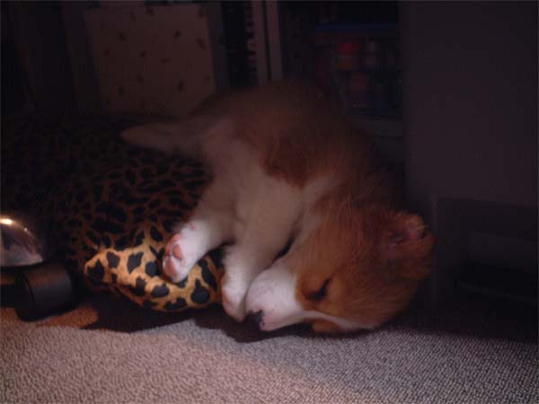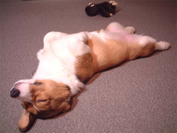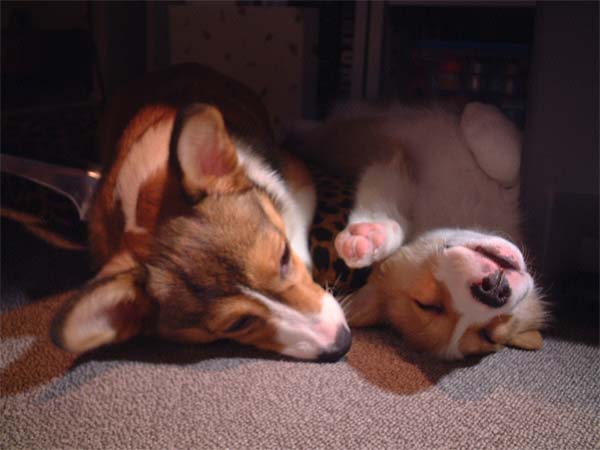 clauseが疲れて寝床にいくと、moofも一緒にお休み。